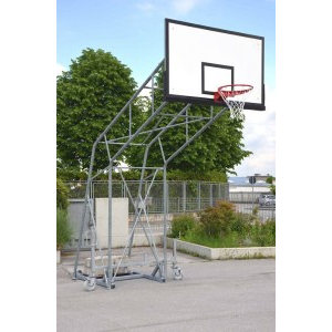Impianto Pallacanestro mod. Olimpionico, struttura reticolare in tubolari di acciaio zincati, sbalzo mt 2,20, tabelloni in laminato HPL, canestri fissi. A preventivo versione fissa o mobile.