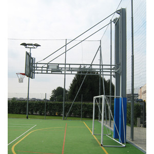 Impianto Pallacanestro mod. Torri per esterno, chiudibile a libro lateralmente. Supporto autoportante con putrelle in acciaio. A preventivo sbalzo ed accessori. Certificato FIBA II° livello