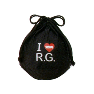 Porta palle Sasaki "I Love R.G." realizzato in nylon e poliuretano. Colore Nero con cuoricino Rosa o Rosso.