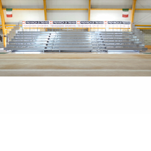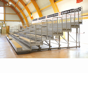 Descrizione Tribuna telescopica per interno, realizzata in conformità alla norma UNI EN 13200. Azienda certificata UNI EN 1090 e 3834. Realizzate su progetto.