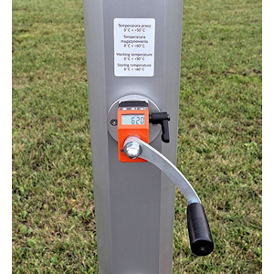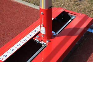 Ritti salto in alto per competizioni di tipo telescopico, montanti in alluminio, regolazione altezza mediante sistema a manovella e cremagliera, lettura diretta dell´altezza. Pesante basamento a T in acciaio verniciato, bolla di livello. Regolazione altezza da cm 110 a cm 265 . Doppi supporti asticella. Certificati IAAF