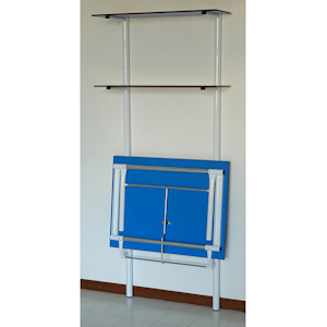 Panca per persone con limitata capacità motoria, telaio in acciaio verniciato, seduta ribaltabile e tettuccio in laminato HPL. Larghezza cm 80.